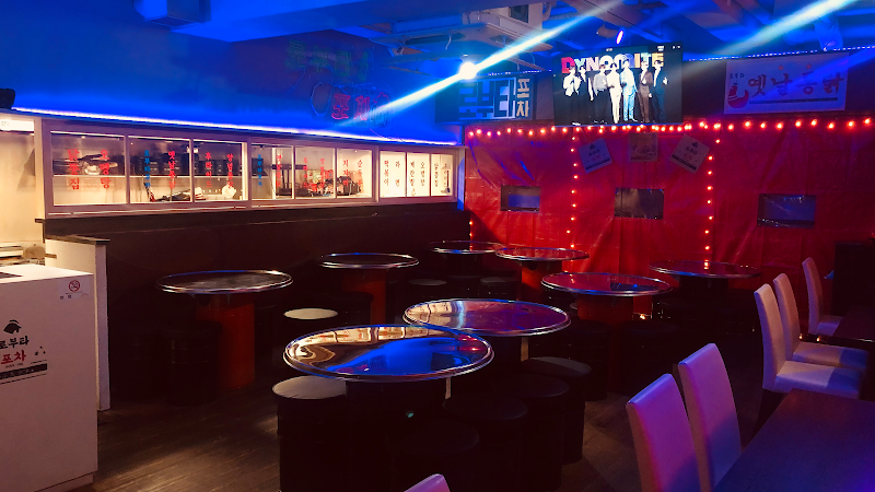 산조의 한국 포장마차 스타일 이자카야. 떡볶이, 치킨, 소주 등 본격 한국 야식