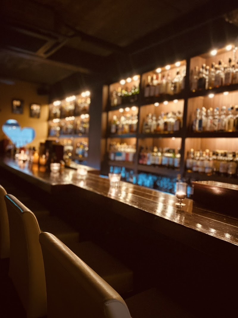 다테마치의 위스키 메인 오센틱 바. 조용한 대인의 공간에서 다양한 위스키를 즐길 수 있음