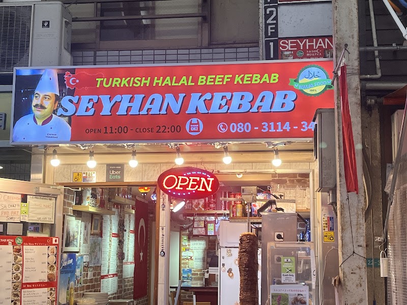 도톤보리의 터키 케밥 스탠드. 숯불에 구운 고기를 피타빵에 싸서 먹는다.