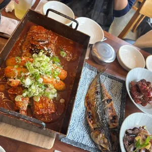 함덕해변 근처의 해물 한식 전문점. 전복해물뚝배기와 성게미역국이 맛있다.