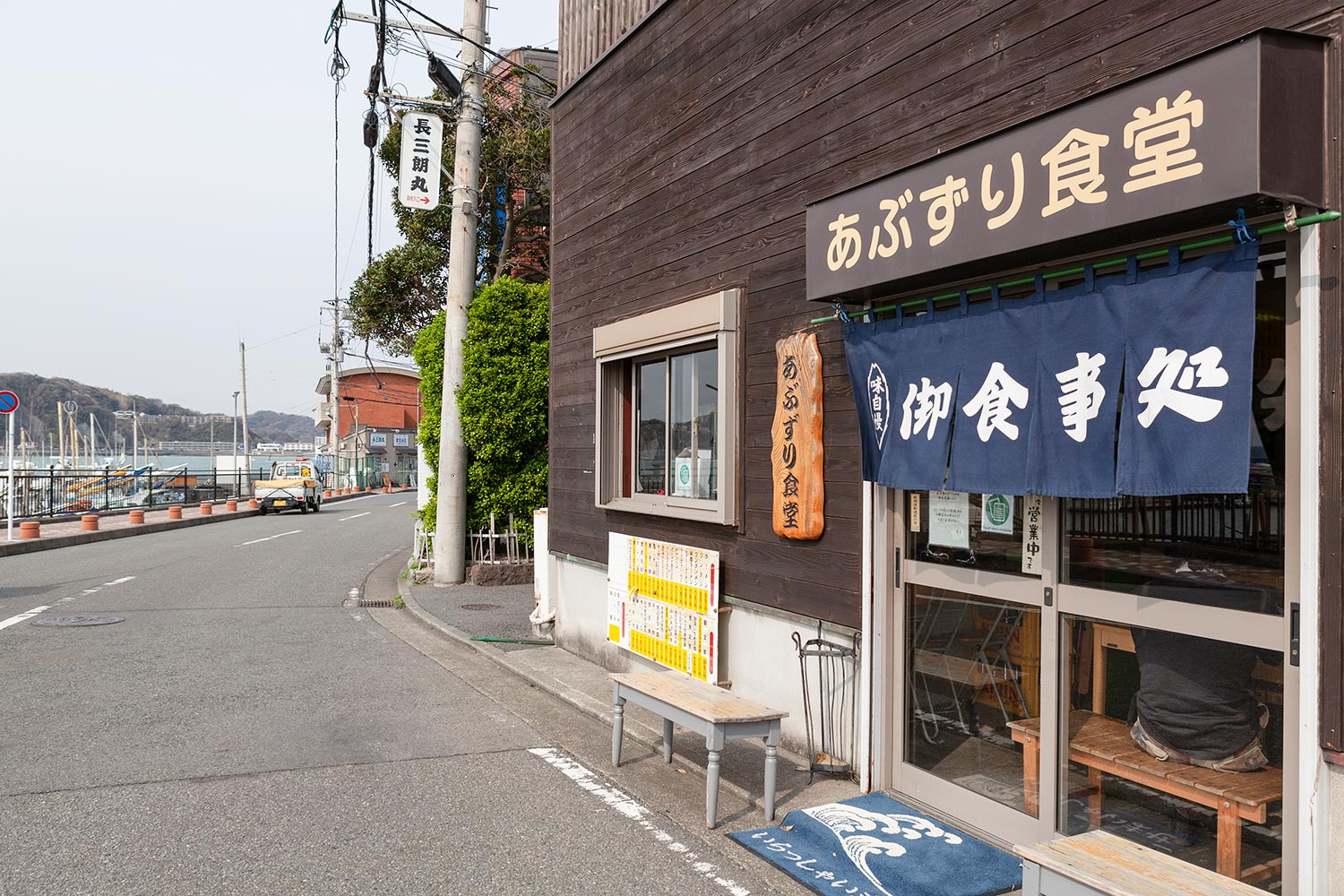하야마 어항의 신선 해산물 식당. 아침 어획 해산물로 만든 정식.