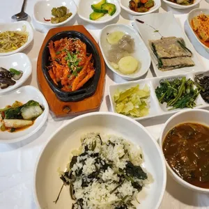 정선 대표 곤드레밥 한정식 맛집으로, 곤드레나물밥과 정갈한 반찬이 한 상 차려진다. 산채 비빔밥과 황기 백숙도 인기 메뉴이다.