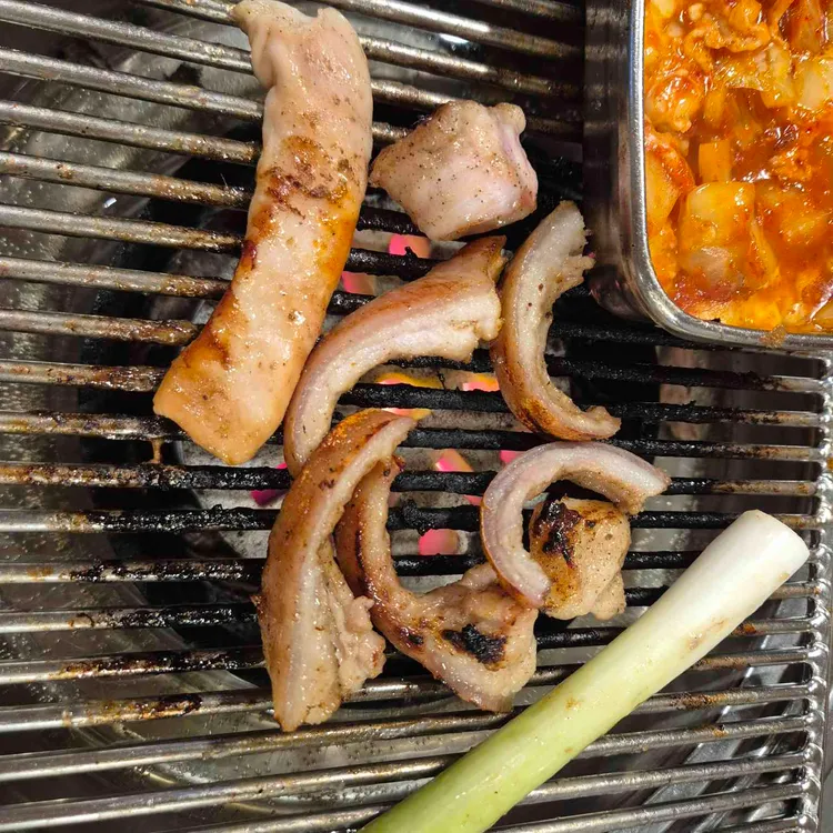 청주 현지인 맛집 중 최고 평점을 기록한 삼겹살 전문점. 숯불에 구운 부속과 삼겹살이 인기.