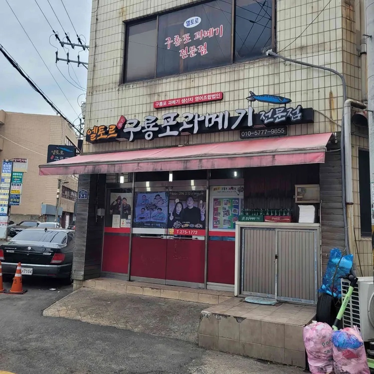 겨울 별미 포항 과메기를 맛볼 수 있는 거리. 김, 초장, 마늘과 함께 먹는 과메기가 일품이다.