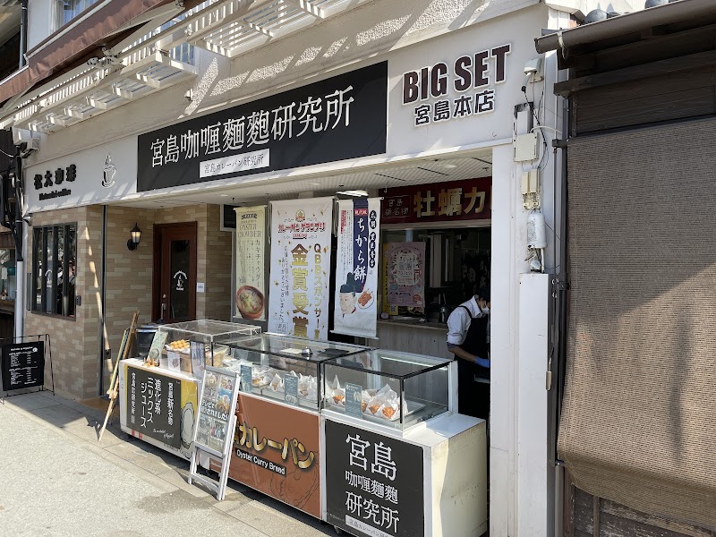 미야지마 명물 굴 카레빵을 판매하는 인기 간식점. 바삭한 빵 속 굴 카레가 일품.