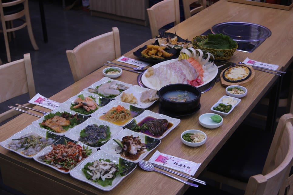 선유도 해변 인근 횟집. 당일 잡은 자연산 해산물을 맛볼 수 있으며 바다 전망이 매력적이다.