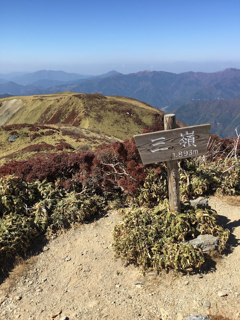 미츠네산(1,894m) 정상 부근 무인 대피소. 검산~미츠네 종주 등산객의 중간 거점