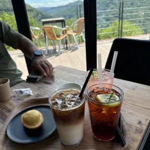 무등산 전망을 감상하며 커피를 즐길 수 있는 뷰카페. 넓은 테라스와 자연 경관이 매력.