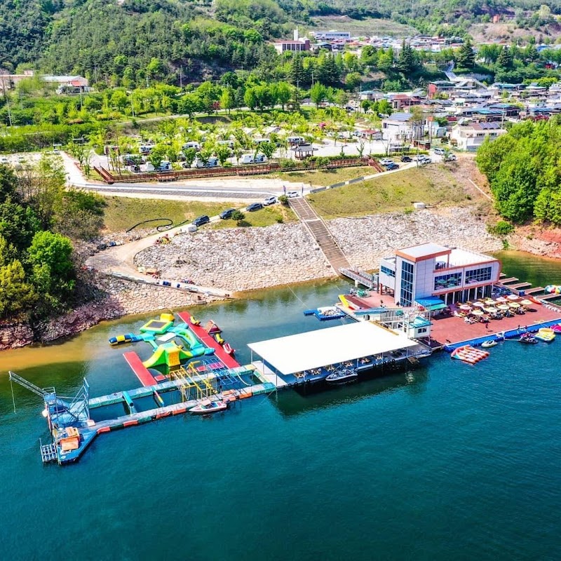 임하호를 품은 자연 속 캠핑장. 오토캠핑, 카라반, 글램핑과 워터파크, 수상레저를 한 번에 즐길 수 있다.