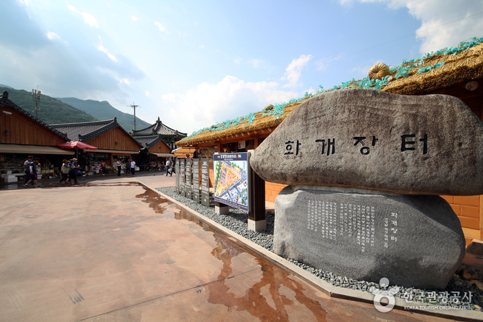 소설 역마 속 5일장의 무대. 섬진강변에 자리한 전통 장터로 하동 야생차와 재래 특산물이 유명하다.