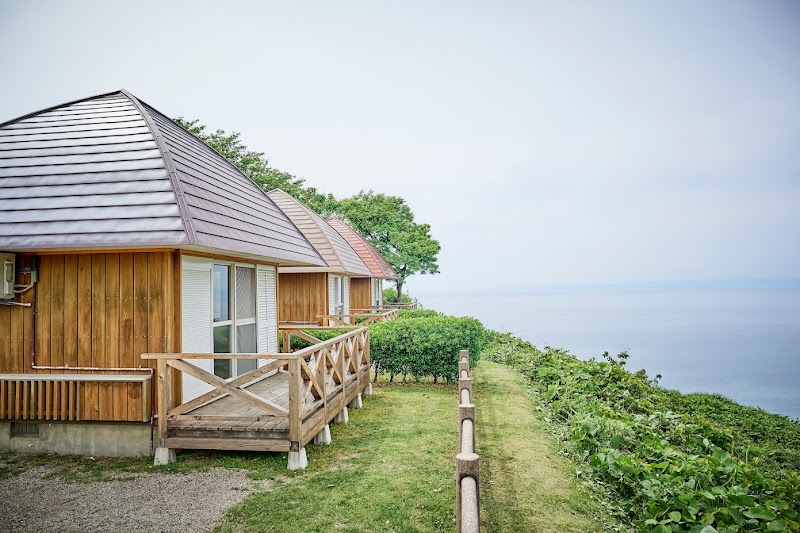 동해가 보이는 언덕 위 오토캠프장. 석양이 아름답고 근처에 해수욕장과 온천이 있다.