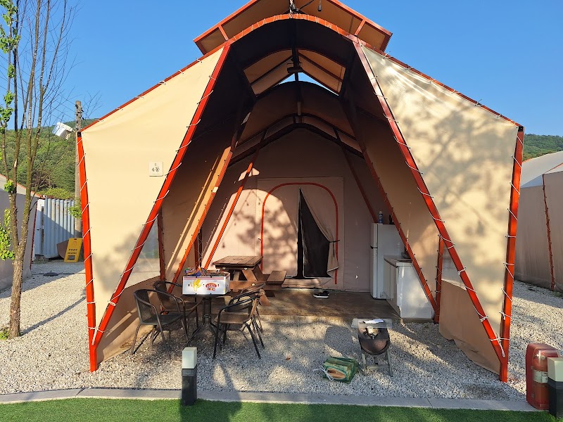 포천 이동계곡 인근의 프리미엄 글램핑장. 울창한 소나무 숲에 둘러싸여 있으며, 바비큐 시설과 계곡 물놀이를 함께 즐길 수 있다.
