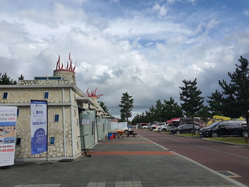 캠핑 사이트 바로 앞에 백사장과 에메랄드빛 동해 바다가 펼쳐지는 오토캠핑장. 수질 좋은 해변에서 물놀이와 캠핑을 동시에 즐길 수 있다.