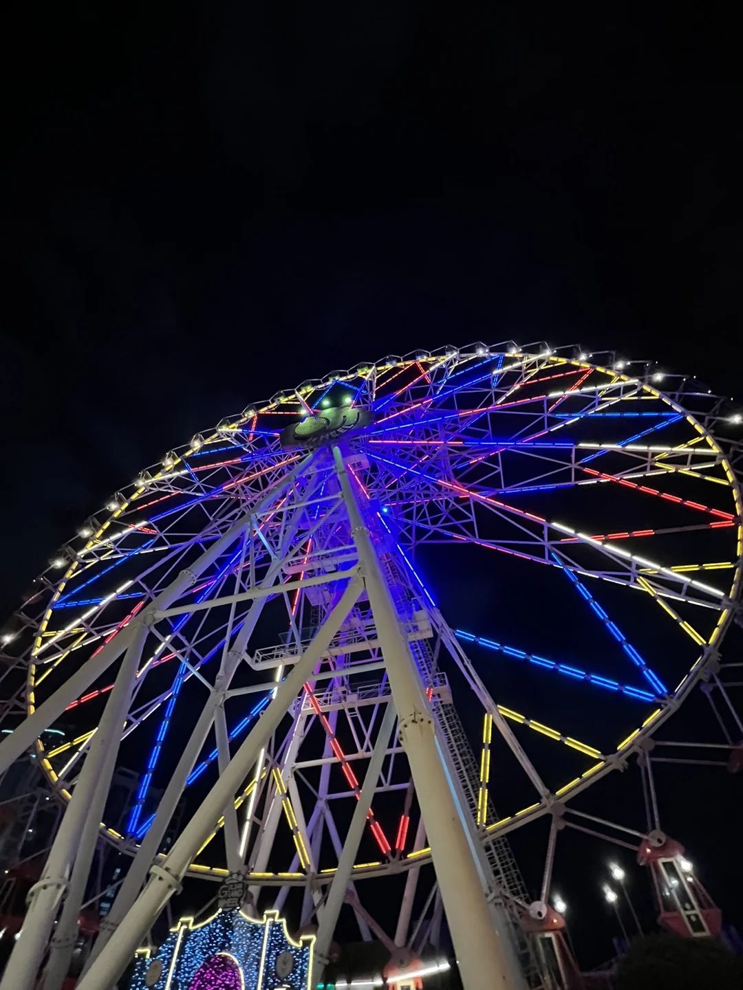 높이 79m 대형 관람차. 해가 지면 42개 캐빈에 알록달록 조명이 켜지며, 울산 도심의 새로운 야경 랜드마크로 자리잡았다.