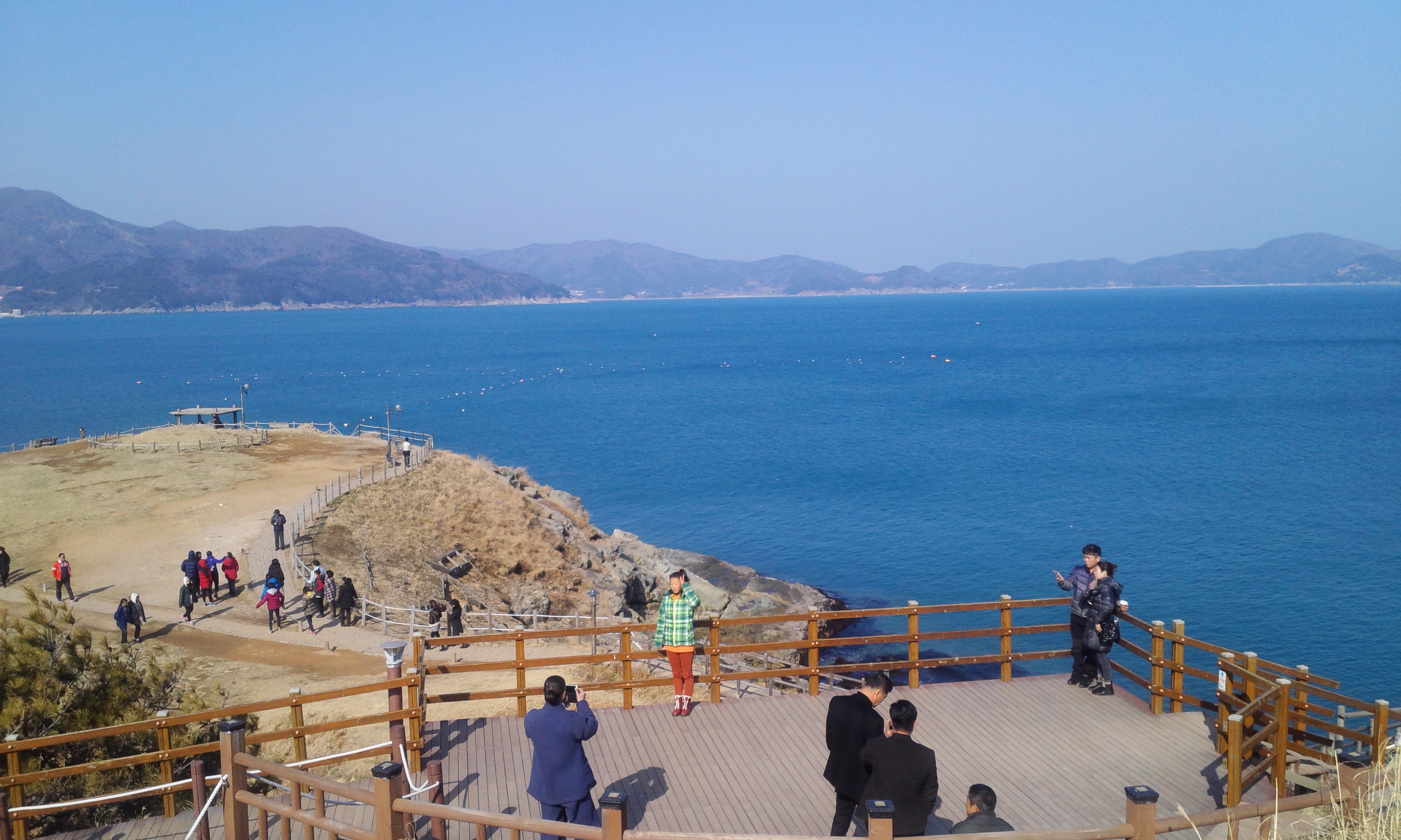 거제도의 대표 포토스팟. 풍차가 있는 언덕에서 한려수도의 섬들과 푸른 바다를 배경으로 인생샷을 남길 수 있다.