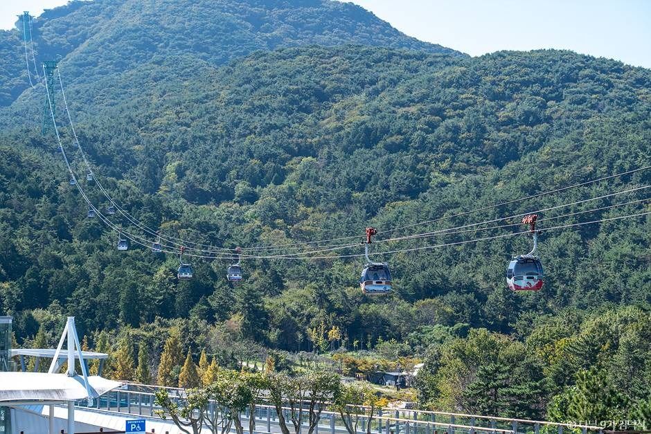 국내 최장 1.975km의 해상 케이블카. 한려수도의 섬들을 내려다보며 미륵산까지 올라가는 관광 명소이다.