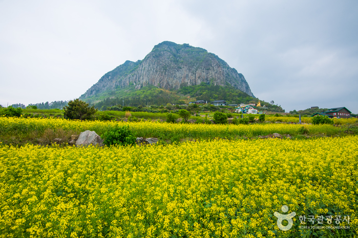 해발 395m의 종 모양 화산체. 산방굴사에서 바다 전경을 감상할 수 있다.