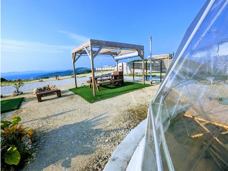 고지대에 위치해 파노라마 뷰를 즐길 수 있는 오키나와현 최대 규모 글램핑 시설. 프라이빗 텐트 사우나도 있다.