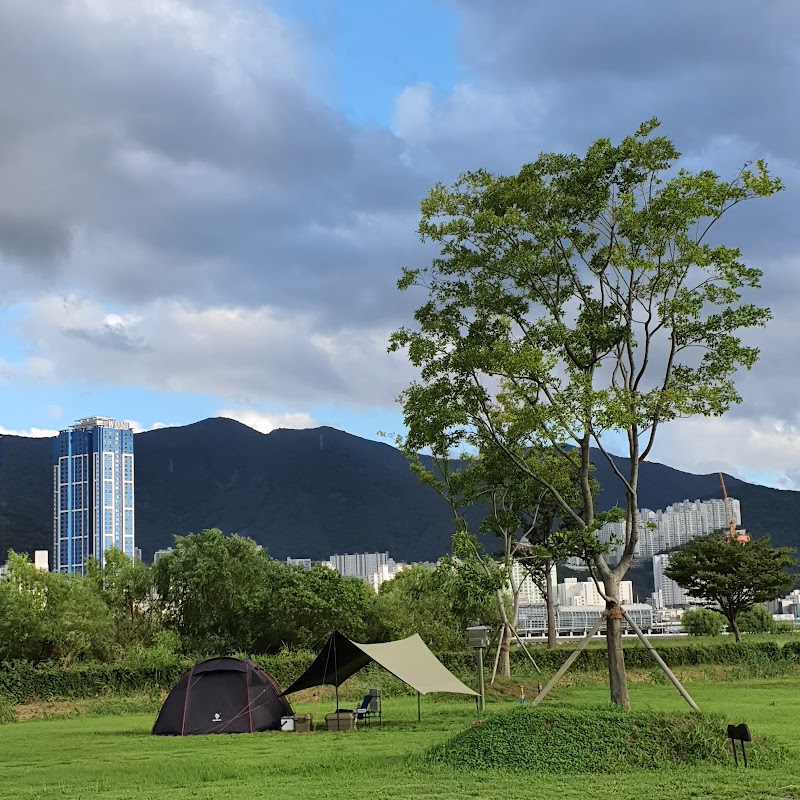 낙동강 하구 대저생태공원 인근 캠핑장. 넓은 자연환경 속에서 캠핑을 즐길 수 있으며 철새 관찰도 가능.