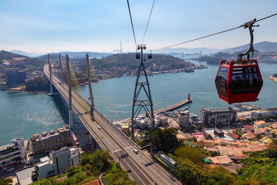 이순신 장군의 거북선을 모티프로 한 사장교로, 야간 LED 조명이 바다 위에 반사되어 환상적인 야경을 연출한다.