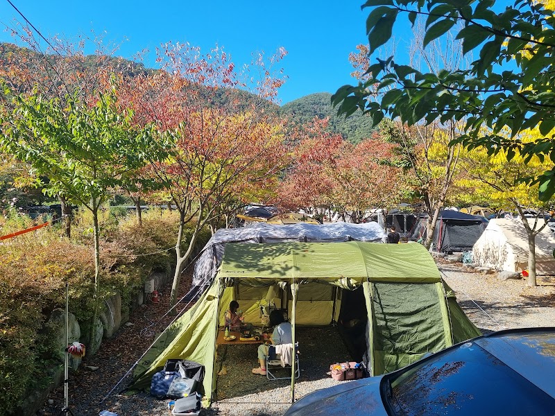 사면이 산으로 둘러싸인 밀양 표충사 인근 오토캠핑장. 40여 개 사이트와 수영장을 갖추고 있으며, 여름 가족 캠핑에 최적화되어 있다.