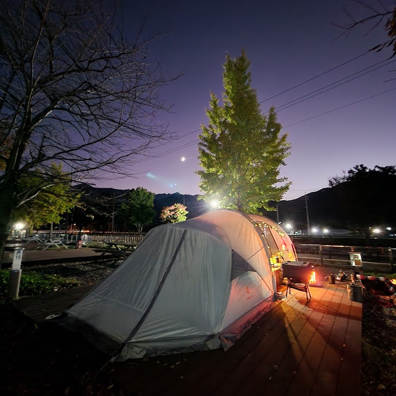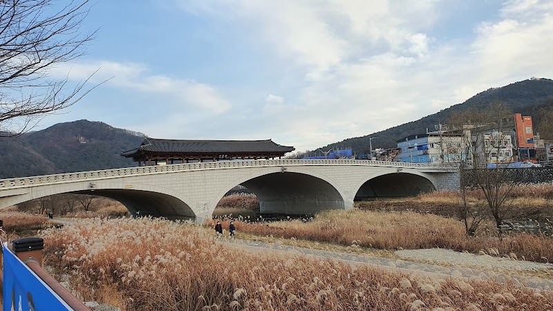 전주한옥마을 남쪽 전주천 위의 나무다리. 야간 조명이 켜지면 한옥마을과 함께 환상적인 야경을 만들어낸다.